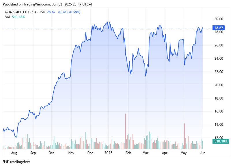 Let’s check in on MDA Ltd., the space robotics, satellite systems and surveillance company that is one of the best proxies for public market sentiments in Canadian defence: