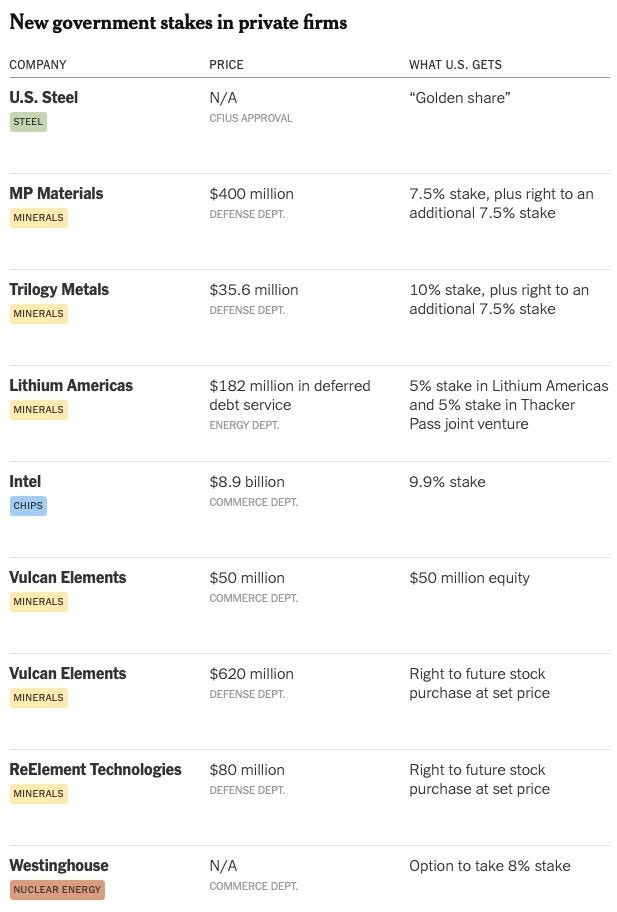 The US government is snapping up ownership shares of private companies it deems essential to national security: