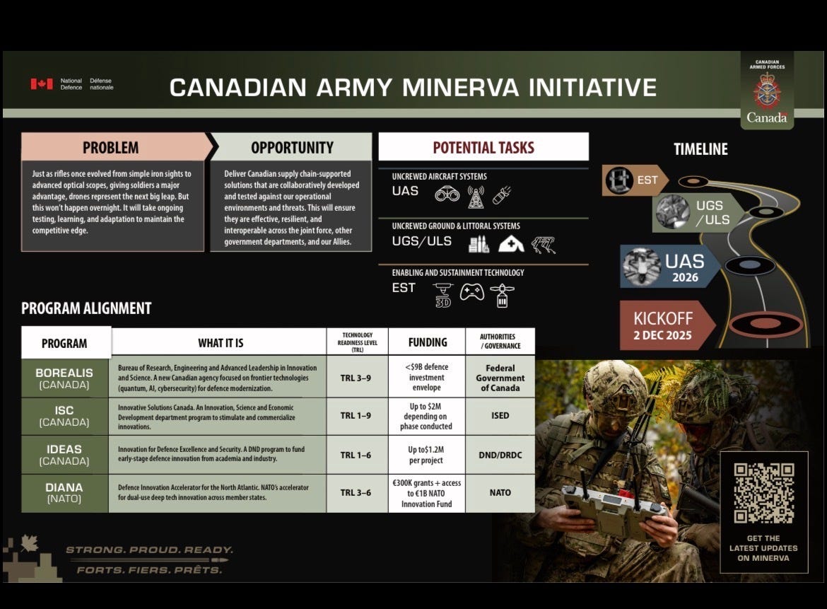 AIM Robotics / RPAS Wilco Launch ‘Wilcoin’ Reward System, Allocates $1 Million to Canadian Drone Users… Navy SEALs want to start a 10-day school to learn drone warfare… Calling any advanced drone pilots in the Ottawa/NCR area… On the heels of last week’s drone detection trials over downtown Ottawa, December 15 is the deadline to apply to the 2026 CUAS Sandbox hosted by IDEaS… A new contest to accelerate the advancement of Canadian-designed space launch vehicles… Latest technical developments in drone defence… The MINERVA Initiative is the Canadian Army’s blueprint uncrewed systems evolution: