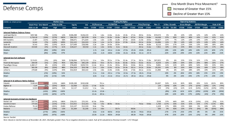 Our friends at British Columbia Investment Management Corporation (BCI) have shared November public comps, which includes defence: