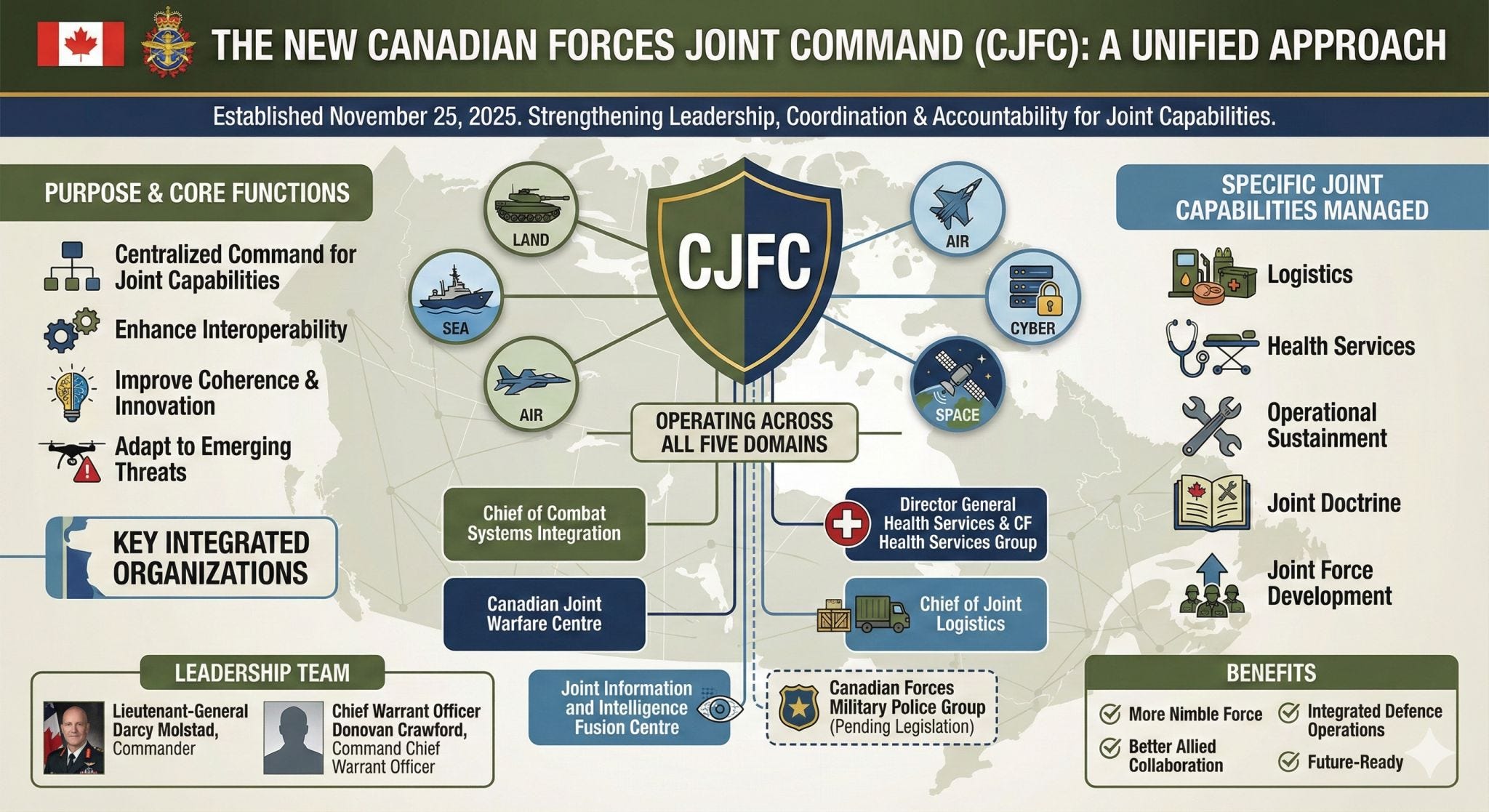Previous studies have identified gaps in how Canadian military joint capabilities are developed, managed and sustained. So the new command will deal with these gaps by centralizing leadership and accountability for joint capabilities: